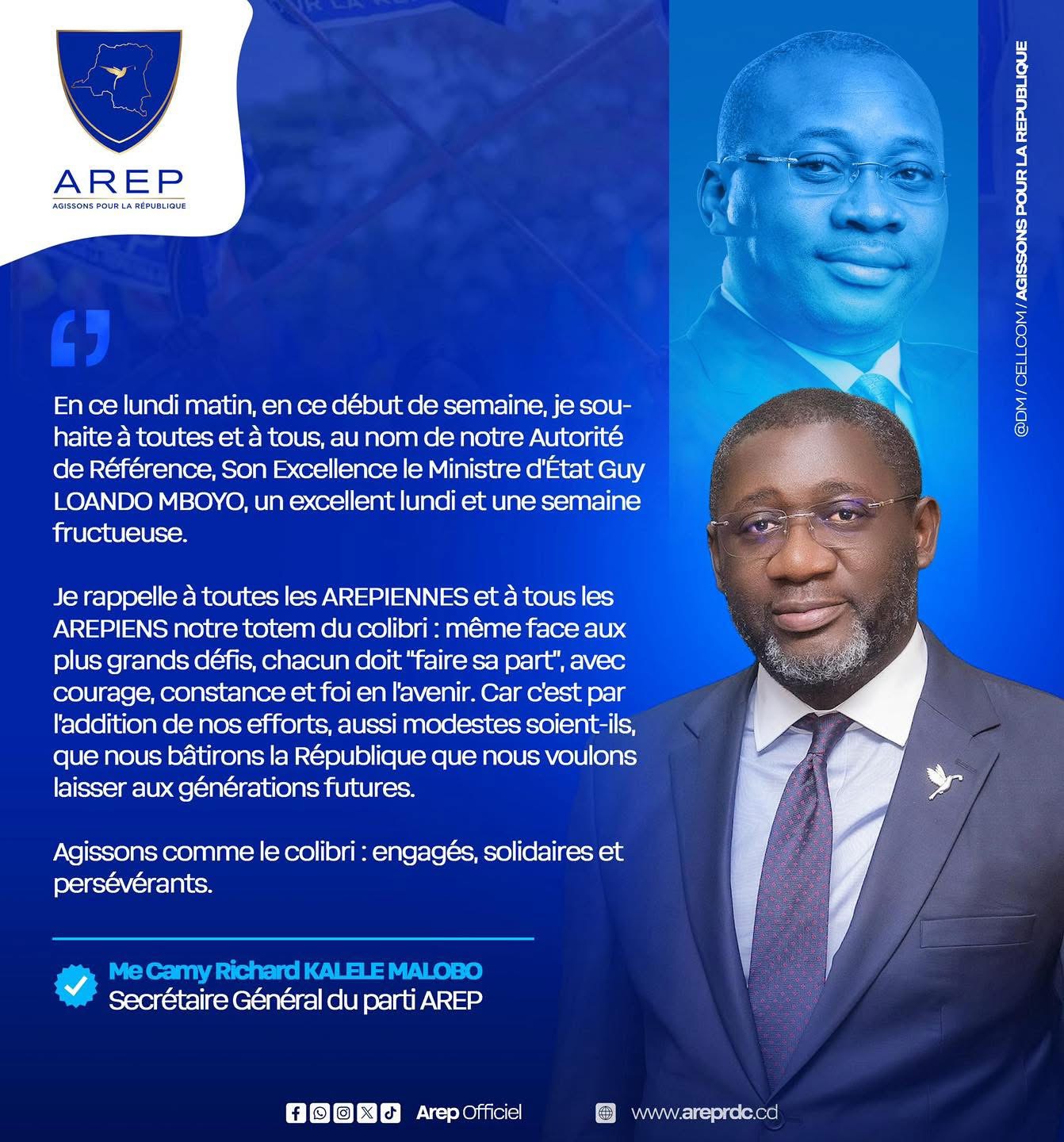 Ce qui caractérise les femmes et les hommes de notre parti, c’est avant tout la volonté de ne pas se résigner à voir notre pays s’abandonner à ses fléaux. Nous, AREP, refusons le fatalisme et croyons au courage et à l’énergie du peuple congolais dans sa capacité....